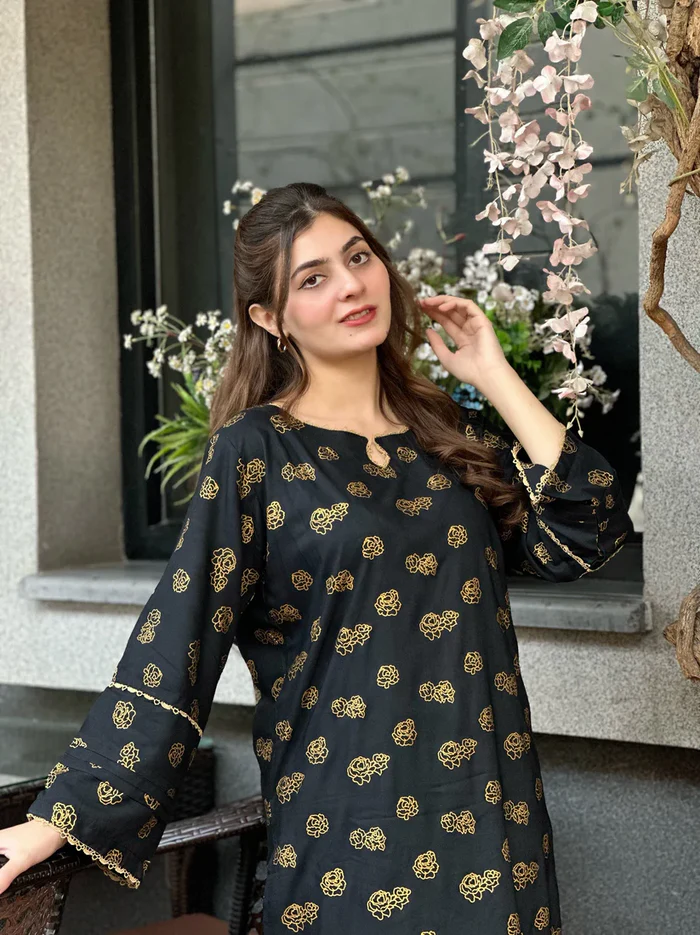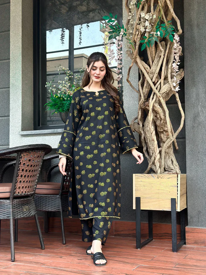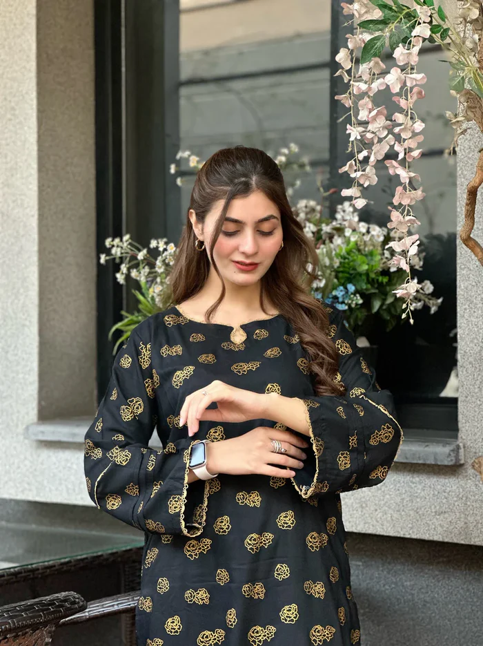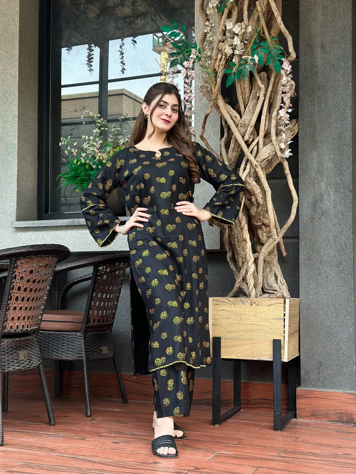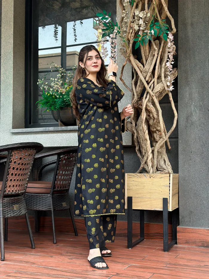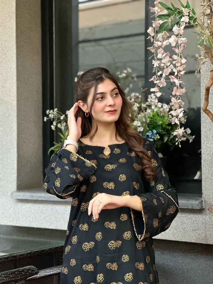 Black hock Embroidered 2pc