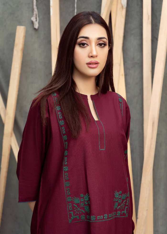 Elevate your everyday wardrobe with this stitched, long-length kurti, beautifully crafted from premium linen and adorned with exquisite embroidery. The rich maroon color and elegant cut make it a must-have for any season.