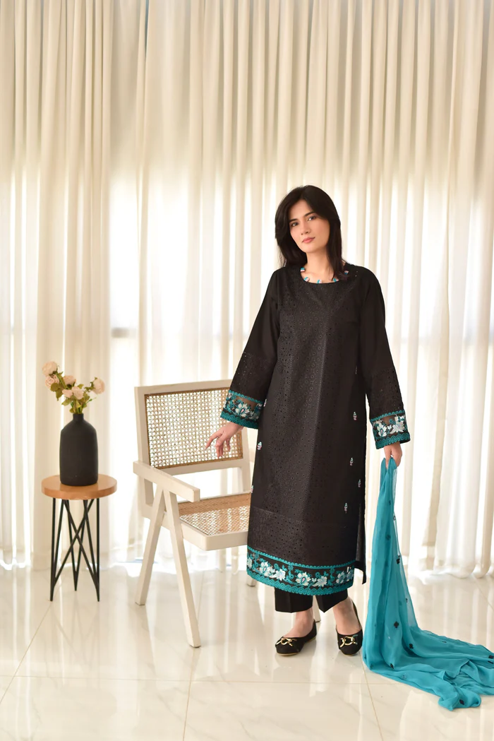 Black hock Embroidered 2pc